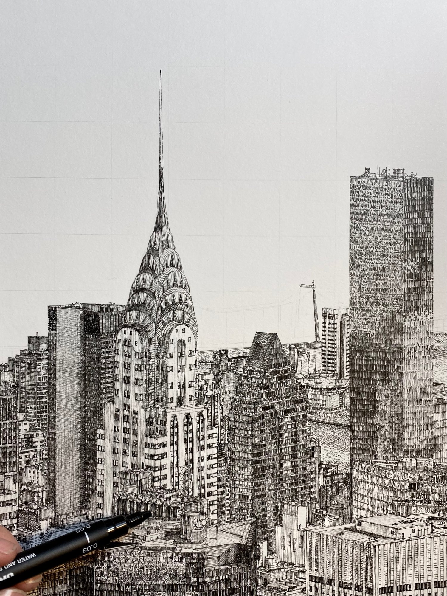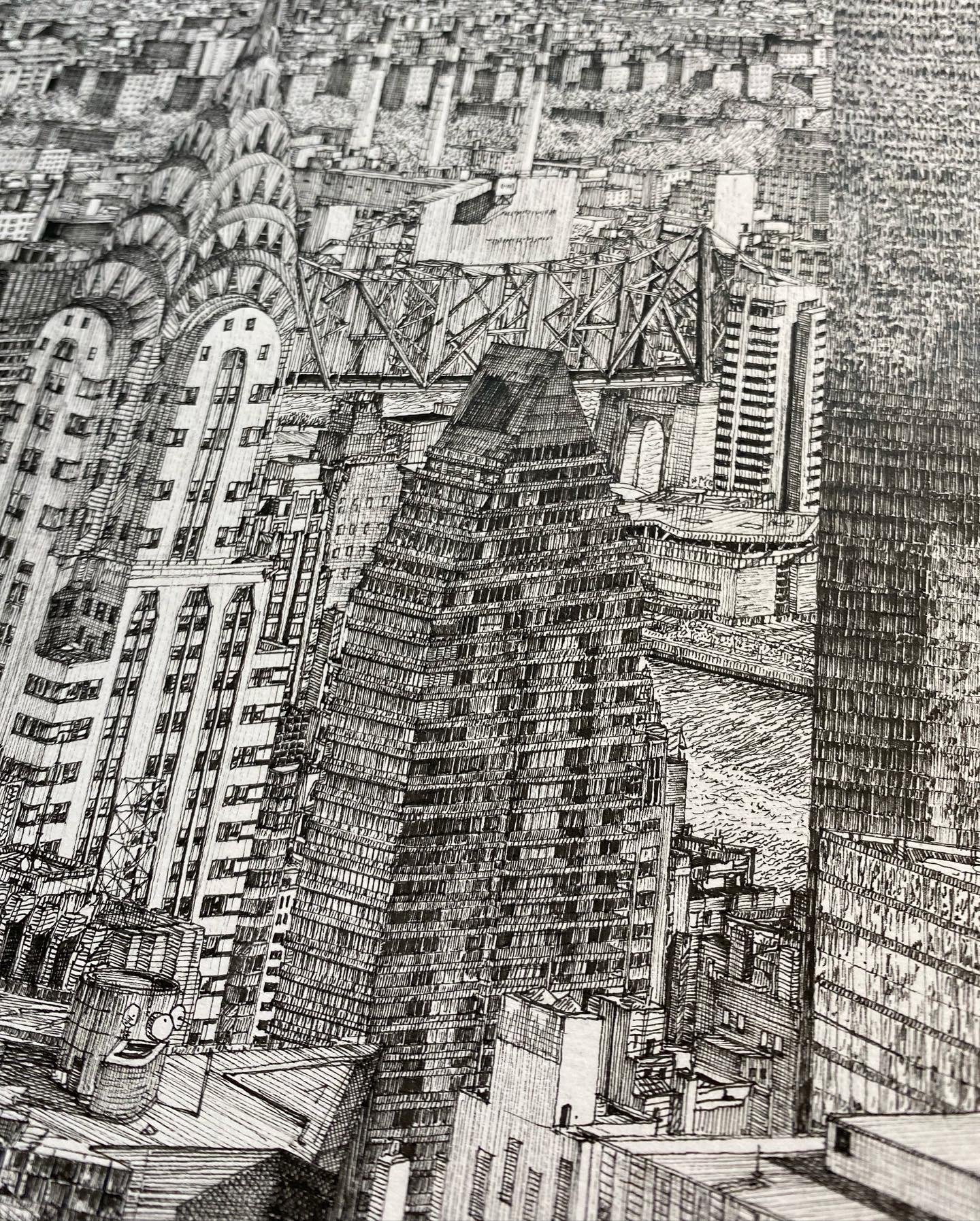 A fineliner illustration of the Chrysler Building, one of New York’s most iconic skyscrapers. Hand-drawn by artist, Josua Hattingh, available as a gallery-quality giclée print.